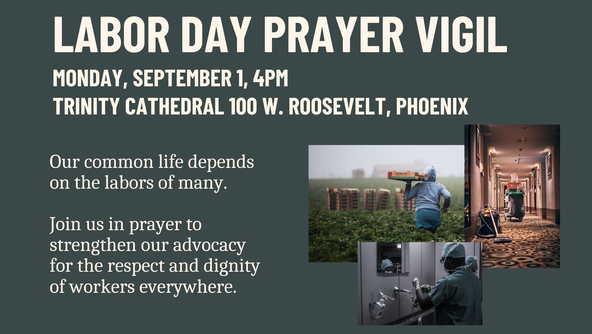 As part of our RE-Humanization Project at Trinity Cathedral, we stand in solidarity with and hold great respect for all who labor in our nation and the world. And so our series of Prayer Vigils continues with a Labor Day Prayer Vigil at 4pm. Prayer is the source of our courage and willingness to act on behalf of those who need us, so we will gather regularly to focus our energies and be strengthened together to go keep doing the work. Join us.